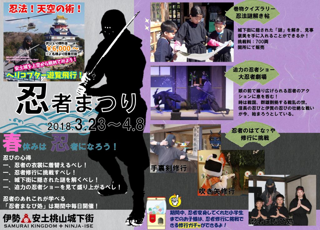 春休みは忍者になろう! 忍者修行に!忍者変身! さらには『忍法!天空の術』で空中散歩まで! とびきりの忍者気分を、伊勢安土桃山城下街で味わおう!